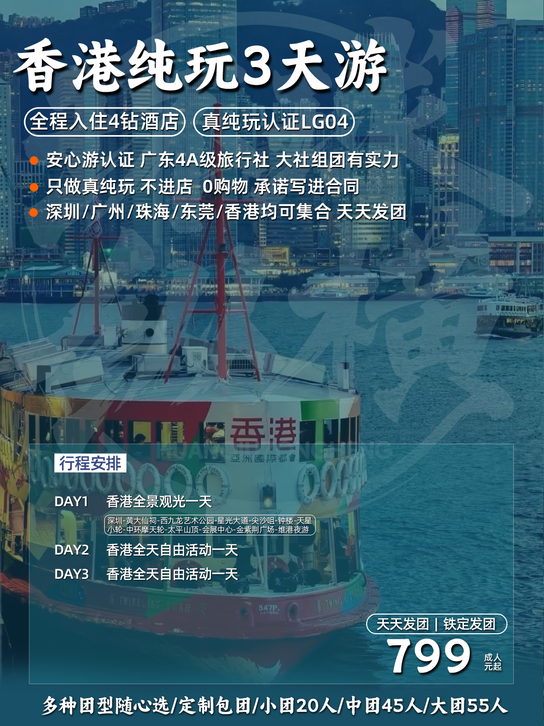 LG04香港3天游(观光+2天自由行)港澳游产品《真纯玩》跟着我们不踩坑,无购物《国深旅郑重承诺》
