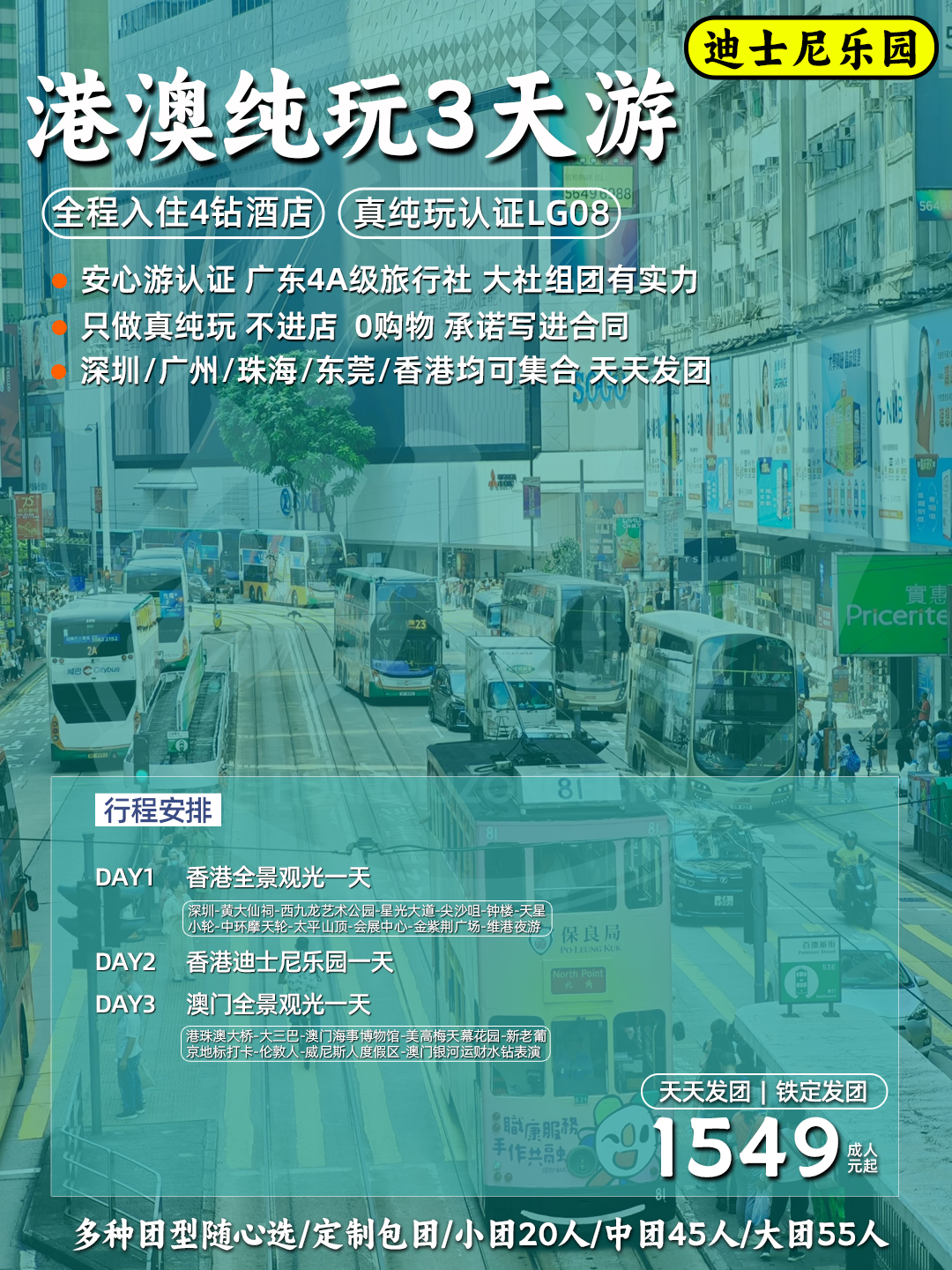 LG08港澳3天(香港观光+迪士尼+澳门观光)港澳游产品《真纯玩》跟着我们不踩坑,无购物《国深旅郑重承诺》