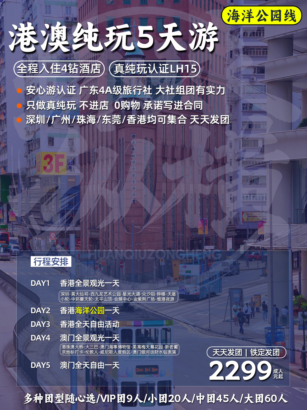 LH15港澳5日游(香港观光+海洋公园+自由行+澳门观光+自由行)住澳 港澳游产品《真纯玩》跟着我们不踩坑,无购物《国深旅郑重承诺》