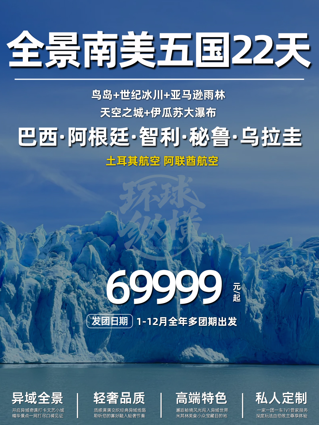 搭乘土耳其航空或阿联酋航空,品质出行有保障。全年1 - 12月多团期出发,69999元起即可开启轻奢之旅。
