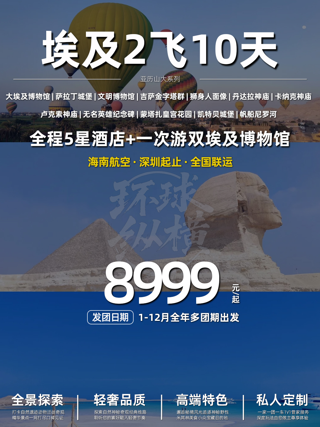 亚历山大埃及10天2飞 深圳海航直飞 全国联运 MZ